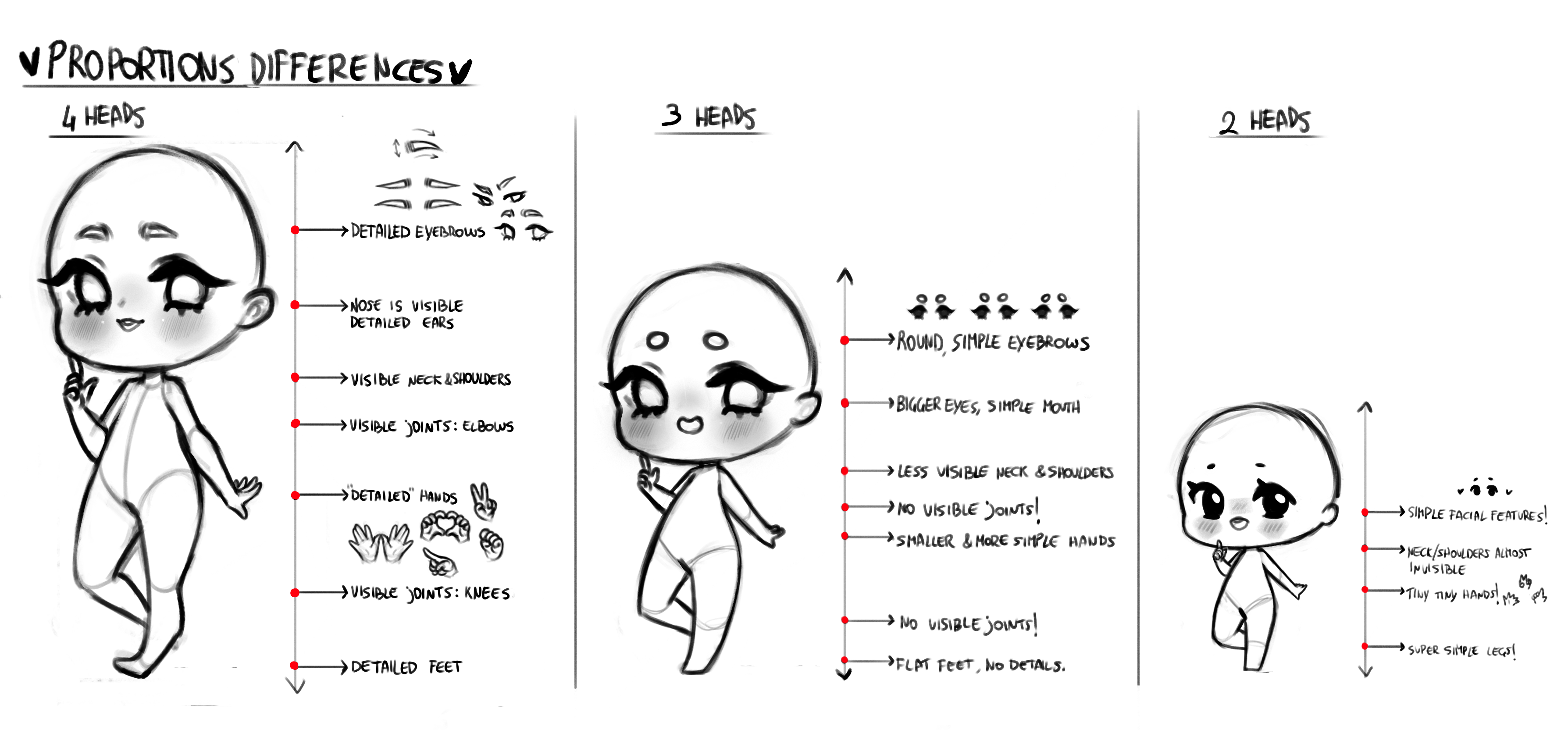 Keep in mind that the character's head should be the same size as the rest of the entire body.